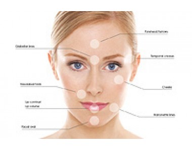 Obličej (pokleslé obočí, pokleslá lícní oblast, mandibula line), krk a dekolt.